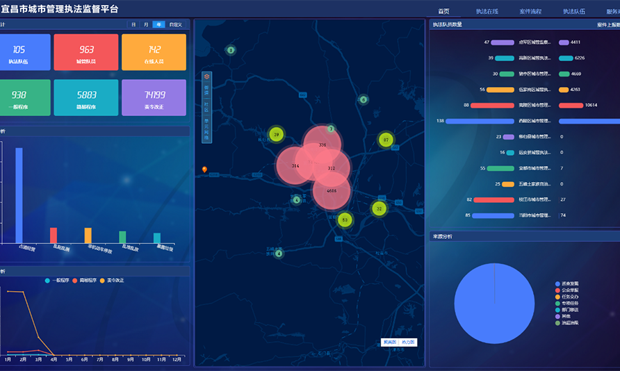 即刻了解為服務(wù)宜昌市高質(zhì)量發(fā)展,建立健全文明城市創(chuàng)建長(zhǎng)效機(jī)制,鞏固文明城市創(chuàng)建成果,根據(jù)國(guó)家、湖北省城市管理相關(guān)會(huì)議精神和工作要求,構(gòu)建宜昌市城市管理執(zhí)法監(jiān)督平臺(tái),覆蓋市級(jí)城管執(zhí)法部門,6個(gè)區(qū)8個(gè)縣的區(qū)屬執(zhí)法部門、鄉(xiāng)鎮(zhèn)(街道)綜合執(zhí)法中心,共計(jì)執(zhí)法部門105個(gè),執(zhí)法人員900余人。