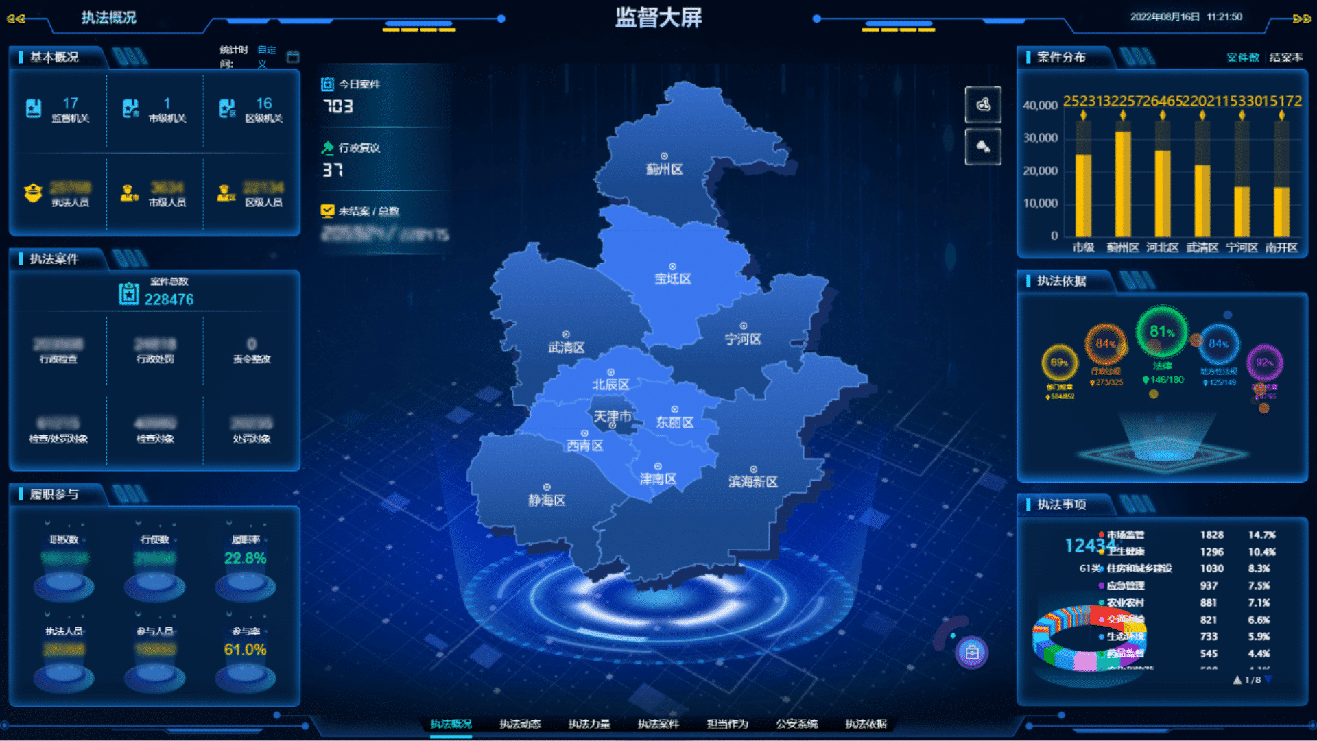 天津市政府建成行政執(zhí)法監(jiān)督平臺(tái),是全國(guó)率先探索能夠覆蓋全部行政執(zhí)法部門、記錄全部行政執(zhí)法過(guò)程、兼顧宏觀法制環(huán)境和微觀執(zhí)法行為的執(zhí)法監(jiān)督平臺(tái),平臺(tái)經(jīng)過(guò)多年豐富的實(shí)踐經(jīng)驗(yàn)積累,獲得國(guó)務(wù)院相關(guān)部門和各省市的廣泛關(guān)注,在國(guó)內(nèi)的執(zhí)法領(lǐng)域中具有里程碑式的影響力。