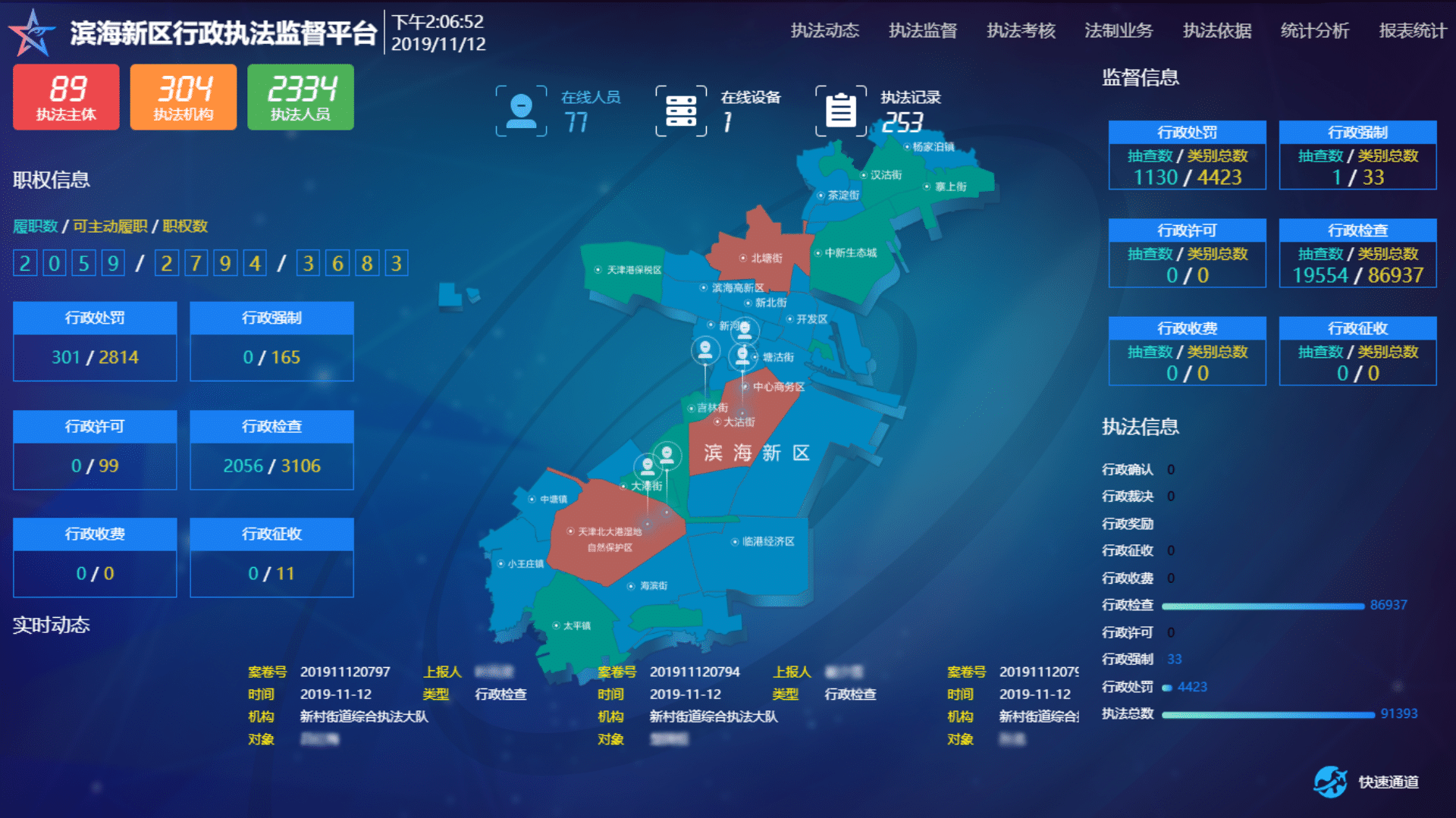 即刻了解天津市濱海新區(qū)執(zhí)法監(jiān)督平臺(tái)依托互聯(lián)網(wǎng)+、大數(shù)據(jù)、云計(jì)算等現(xiàn)代信息化技術(shù),為天津?yàn)I海新區(qū)開發(fā)建設(shè)了集執(zhí)法辦案、執(zhí)法監(jiān)督、法制審核、法制業(yè)務(wù)等功能于一體的“濱海新區(qū)行政執(zhí)法監(jiān)督平臺(tái)”,實(shí)現(xiàn)了全區(qū)行政執(zhí)法工作網(wǎng)上開展、執(zhí)法文書網(wǎng)上制作、執(zhí)法監(jiān)督實(shí)時(shí)開展、考核結(jié)果自動(dòng)生成。后期按照推行行政執(zhí)法三項(xiàng)制度試點(diǎn)工作的要求,在平臺(tái)原有功能基礎(chǔ)上,進(jìn)一步拓展了系統(tǒng)功能。依靠此平臺(tái)助力天津?yàn)I海新區(qū)不斷提高依法行政的能力和水平。