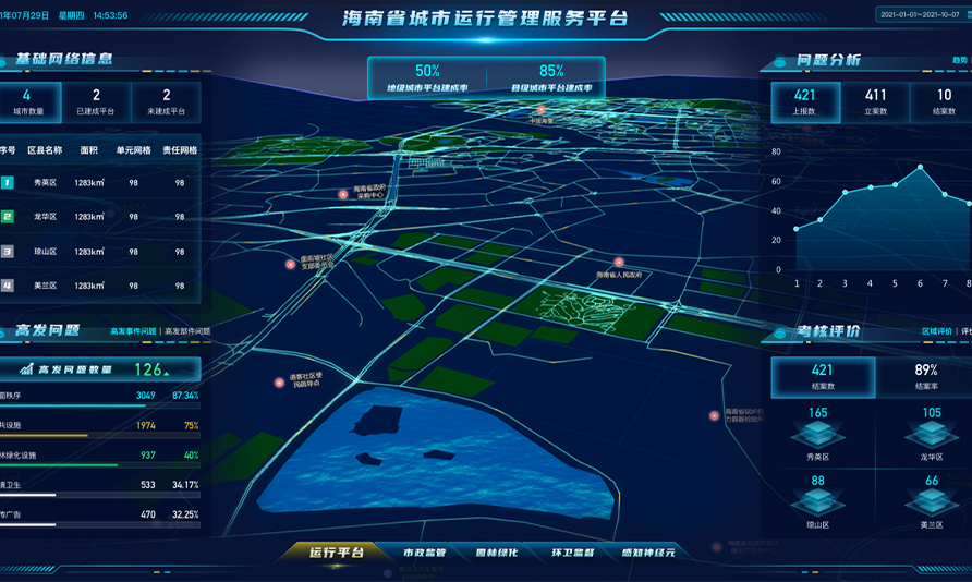 海南省在原有城市管理信息化工作基礎(chǔ)上,整合建設(shè)覆蓋20個(gè)市縣的海南省市一體化城市綜合管理服務(wù)平臺,初步形成全省城市綜合管理服務(wù)平臺智慧互聯(lián)、數(shù)據(jù)共享、協(xié)同高效,打造集精準(zhǔn)監(jiān)測、主動(dòng)發(fā)現(xiàn)、智能處置的城市“一盤棋”治理體系,增強(qiáng)城市管理綜合統(tǒng)籌能力,提高城市科學(xué)化、精細(xì)化、智能化管理水平。
