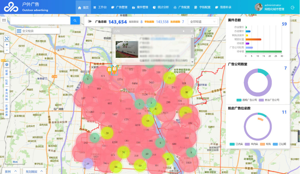 即刻了解實地測繪戶外廣告投放位置信息,調(diào)查廣告內(nèi)容、大小等基本信息,與廣告審批業(yè)務(wù)臺賬進行梳理對齊,建立戶外廣告數(shù)據(jù)庫,輔助開展戶外廣告的審批、執(zhí)法和運行。