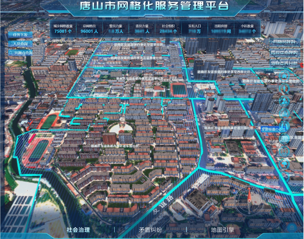 即刻了解依托“CIM+網(wǎng)格化”的方式,整合部件、地理編碼、網(wǎng)格、人口、房屋、組織機構(gòu)等因素,完成全市13472平方公里范圍內(nèi)18個區(qū)、249個街鎮(zhèn)、6338個社區(qū)、15557個基礎(chǔ)網(wǎng)格和78499個單元網(wǎng)格的劃分工作,實現(xiàn)“人地物”在三維GIS平臺中互聯(lián)互動、決策分析,為實現(xiàn)“小事不出村、大事不出鄉(xiāng)、矛盾不上交”,打造夜不閉戶的平安唐山提供可靠數(shù)據(jù)支撐。