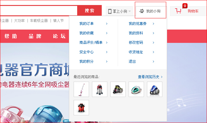 第一步:登錄,登錄后點擊“我的小狗”進(jìn)入個人中心頁面。